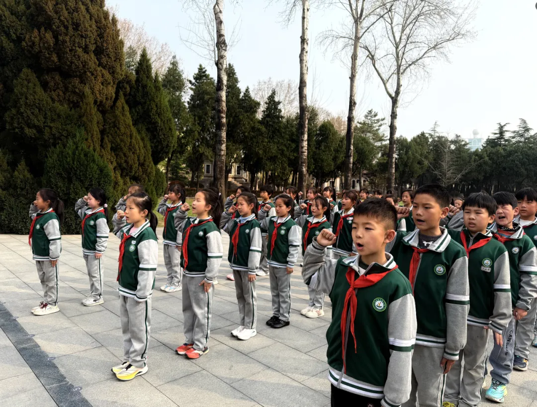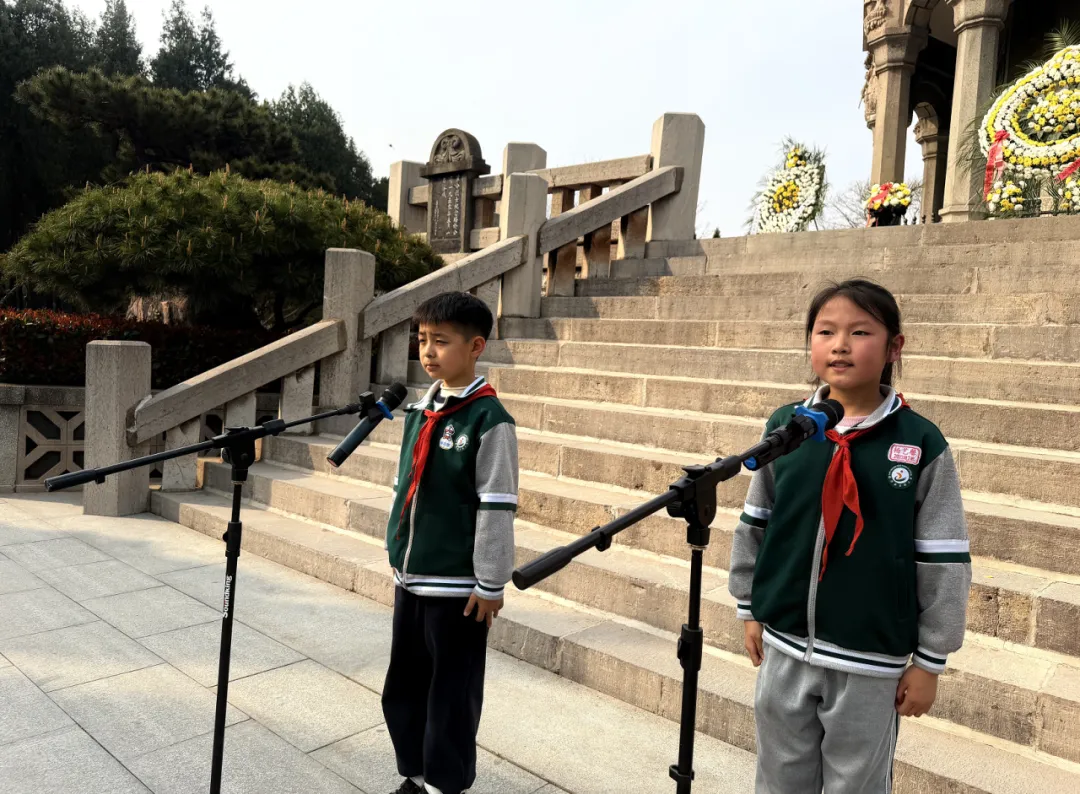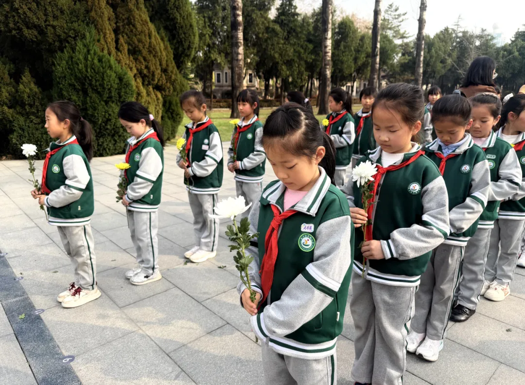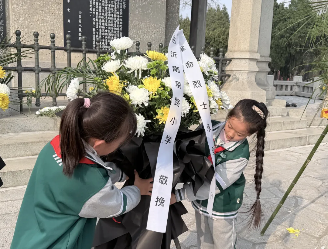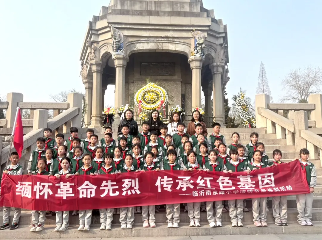 清明节前夕,临沂南京路小学组织党员教师与少先队员代表走进华东革命烈士陵园,开展清明祭扫活动,缅怀革命先烈,传承红色基因。