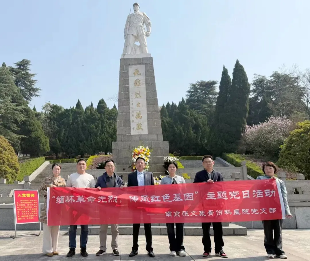 清明寄哀思,丰碑励前行。为深切缅怀革命先烈的丰功伟绩,传承红色基因,汲取奋进力量,4月1日,南京张文象骨伤科医院党支部书记张文象院长组织党员代表前往烈士陵园开展“缅怀革命先烈、传承红色基因”主题党日活动,以庄重的仪式致敬先烈、感悟初心。