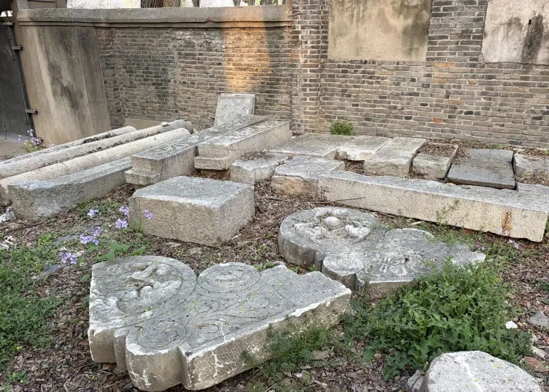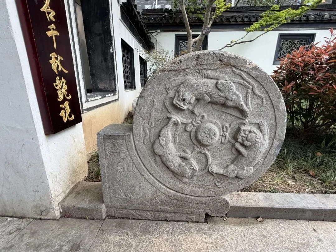 院内的院墙下杂乱堆放着石碑、石柱、石鼓之类的残破石头雕刻构件,有精美的纹饰图案,其中一块石牌上刻有“赠太傅、太子太保、武英殿大学士、两江总督、一等毅勇侯曾文正公遗爱之坊”。