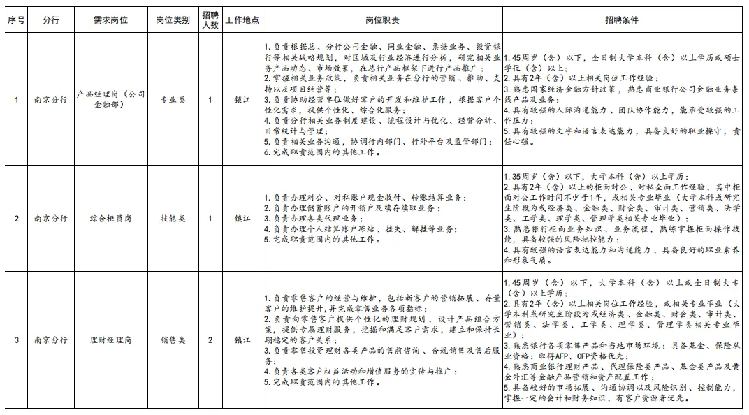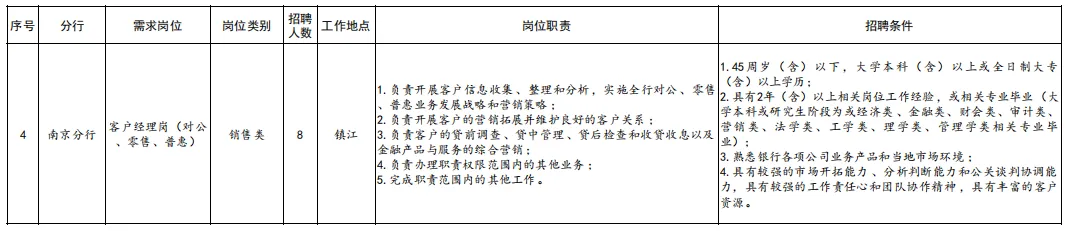 南京分行现根据业务发展需要,诚邀金融人才加盟,共创美好未来!