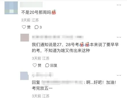 接到通知是27号,28号考试,