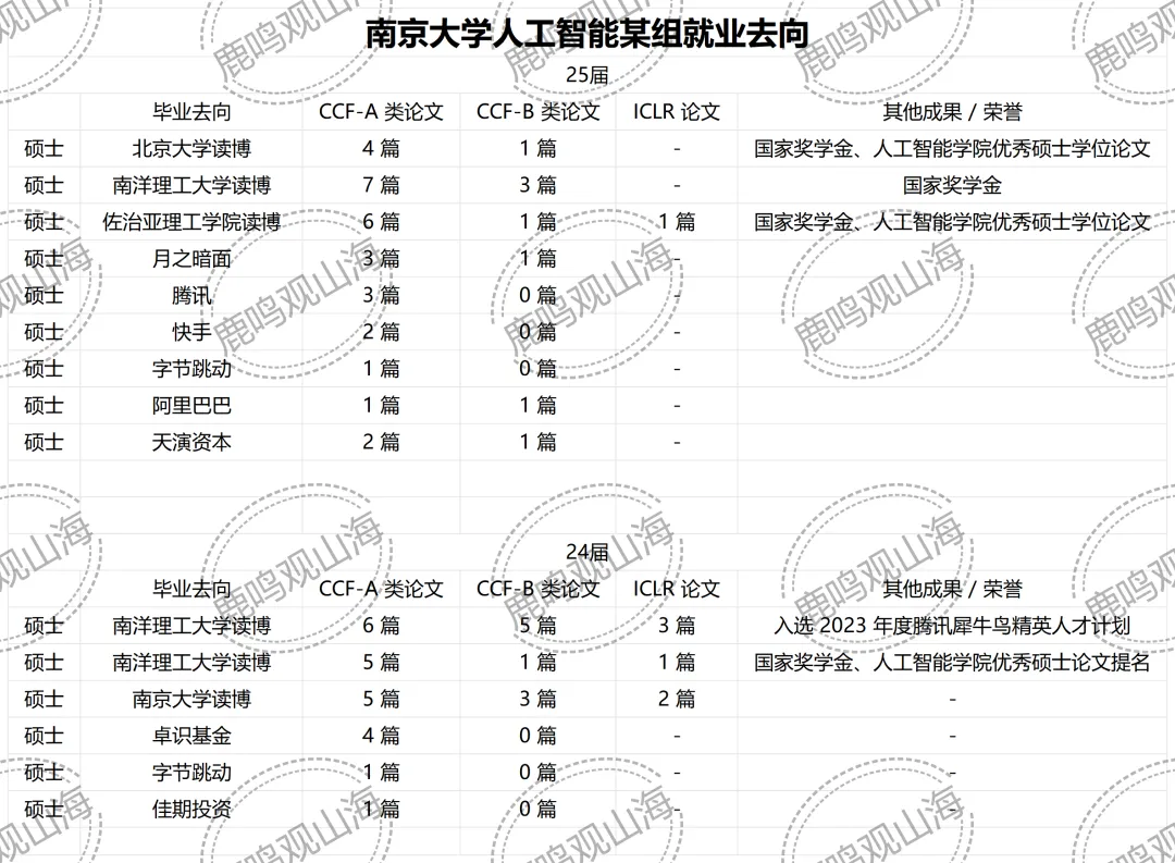 25届硕士9人,深造3人分别为北京大学博士(4篇A),南洋理工大学读博(7篇a),佐治亚理工读博(6篇a,一篇lclr)当然,肯定不会是全部一作,笔者也没去一一查阅,但是硕士能去南洋理工以及佐治亚理工读博,A会一作肯定是不会少的。