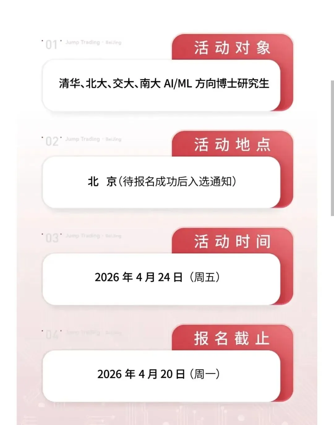 jump trading为清华大学,北京大学,上海交通大学,南京大学的AI/ML博士(应该没人会反驳,交大是上交,南大是南京大学吧?)
