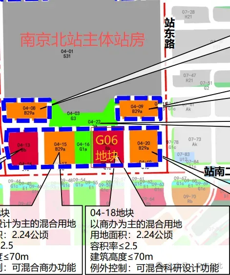 随后我对照了南京北站枢纽经济区规划设计图,该地块位于南京北站南广场出口处,整个项目并不高,出让公告显示限高70米。