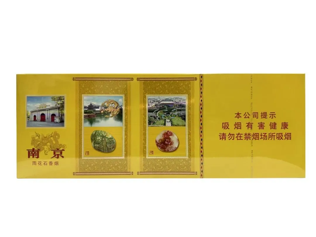 “南京(雨花石)”卷烟包装设计上传承发扬了南京(九五)卷烟产品尊贵的“龙文化”,然后将具有南京特色的历史人文文化和“雨花石文化”融合进来。产品商标上选用独具特色的南京雨花石和具有典型代表的江南那小桥流水的秀丽风光。