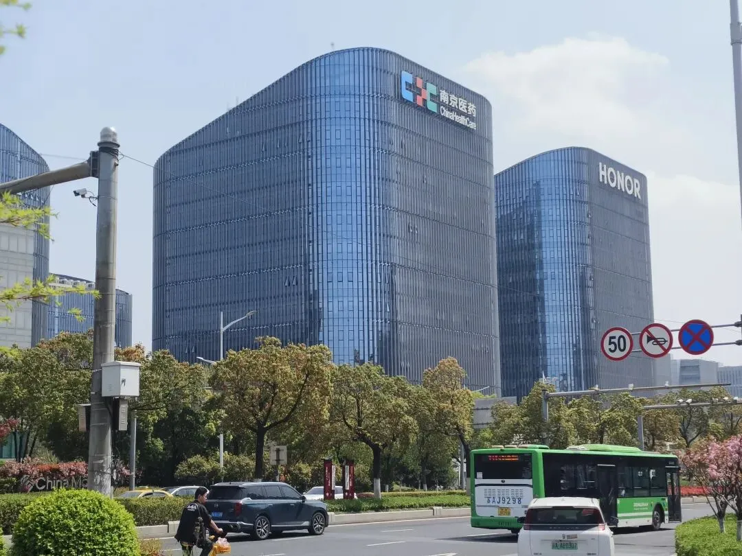 沿街望去,南京医药、荣耀等企业总部鳞次栉比,玻璃幕墙在阳光下闪着光,车流不息,行人匆匆,每一步都踩着数字经济的脉搏。