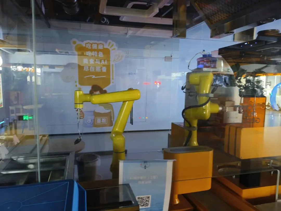走进餐厅,最吸睛的就是各种熙香智能小吃机:机械臂在透明橱窗里精准操作,扫码下单、智能鲜制,几分钟就能拿到一份热乎的美食。