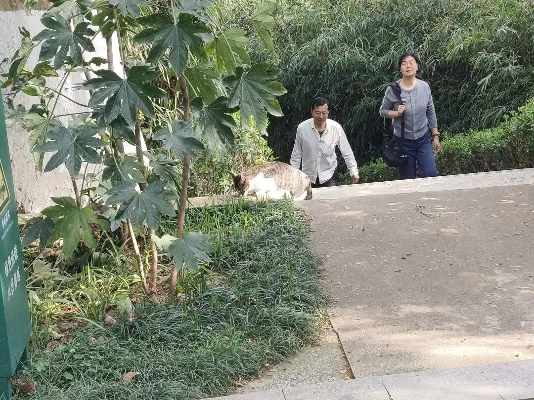 不远处,一只狸花猫在草丛里慵懒地晒着太阳,行人缓步走过,生怕惊扰了这份宁静。