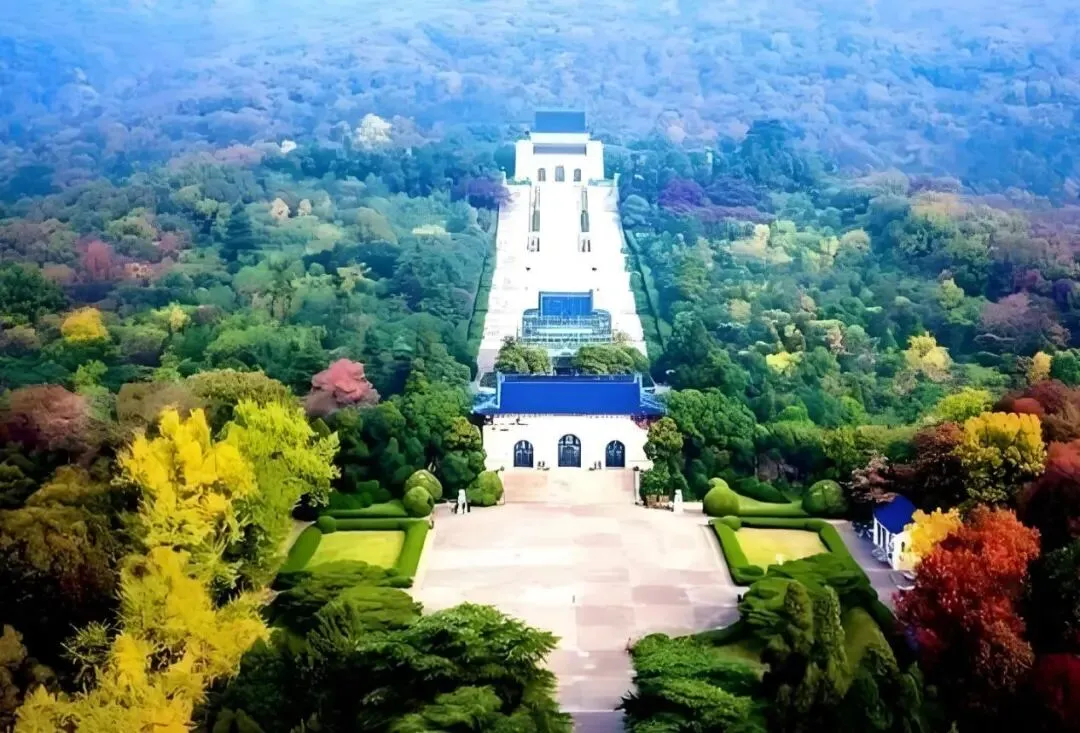 紫金山南麓的蓝瓦白墙建筑群,392级台阶象征当时中国人口,音乐台鸽子盘旋时,可感受"天下为公"的博大气象。