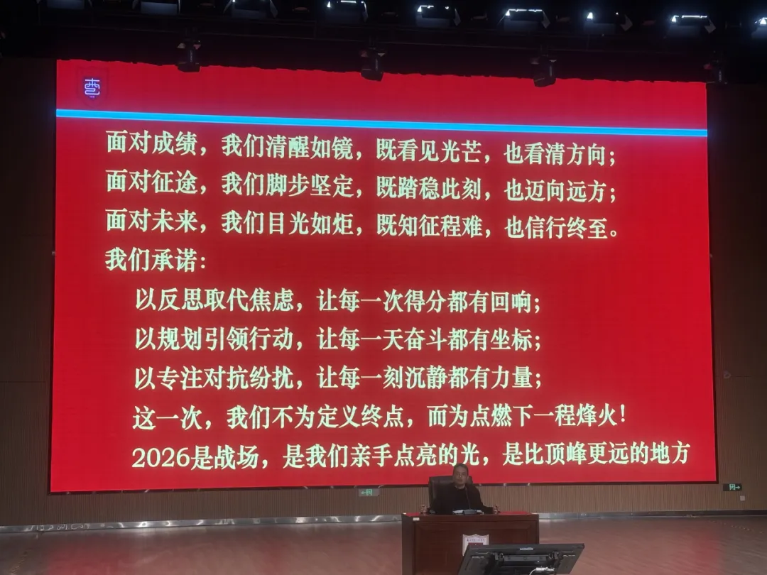 此次高三一模分析学生大会,既是一次复盘总结会,更是一场高考冲刺动员会。相信全体高三学子定能牢记嘱托、不负韶华,以信念为帆、以拼搏为桨、以务实为舵,在剩余的备考时光里全力以赴、奋勇冲刺,在 2026 年高考中绽放青春光彩,书写属于自己的辉煌篇章!