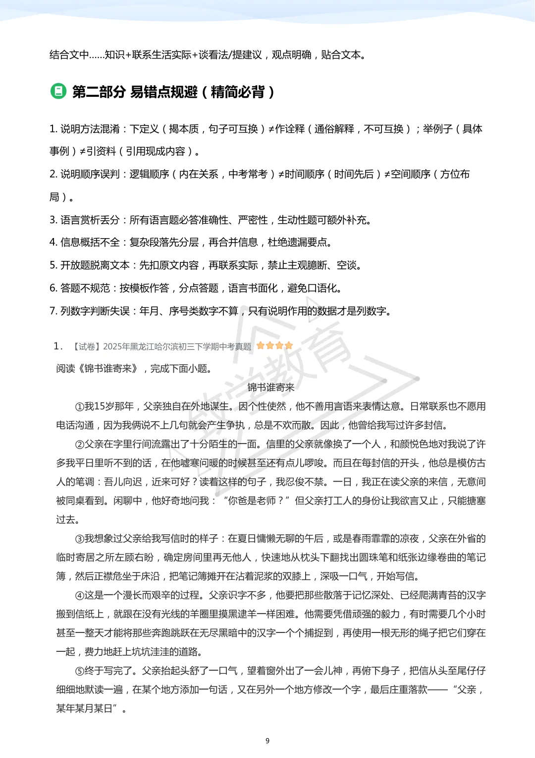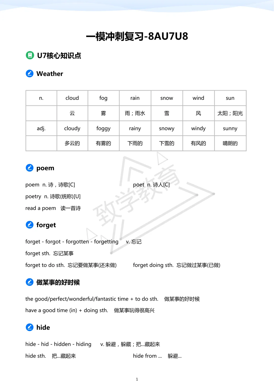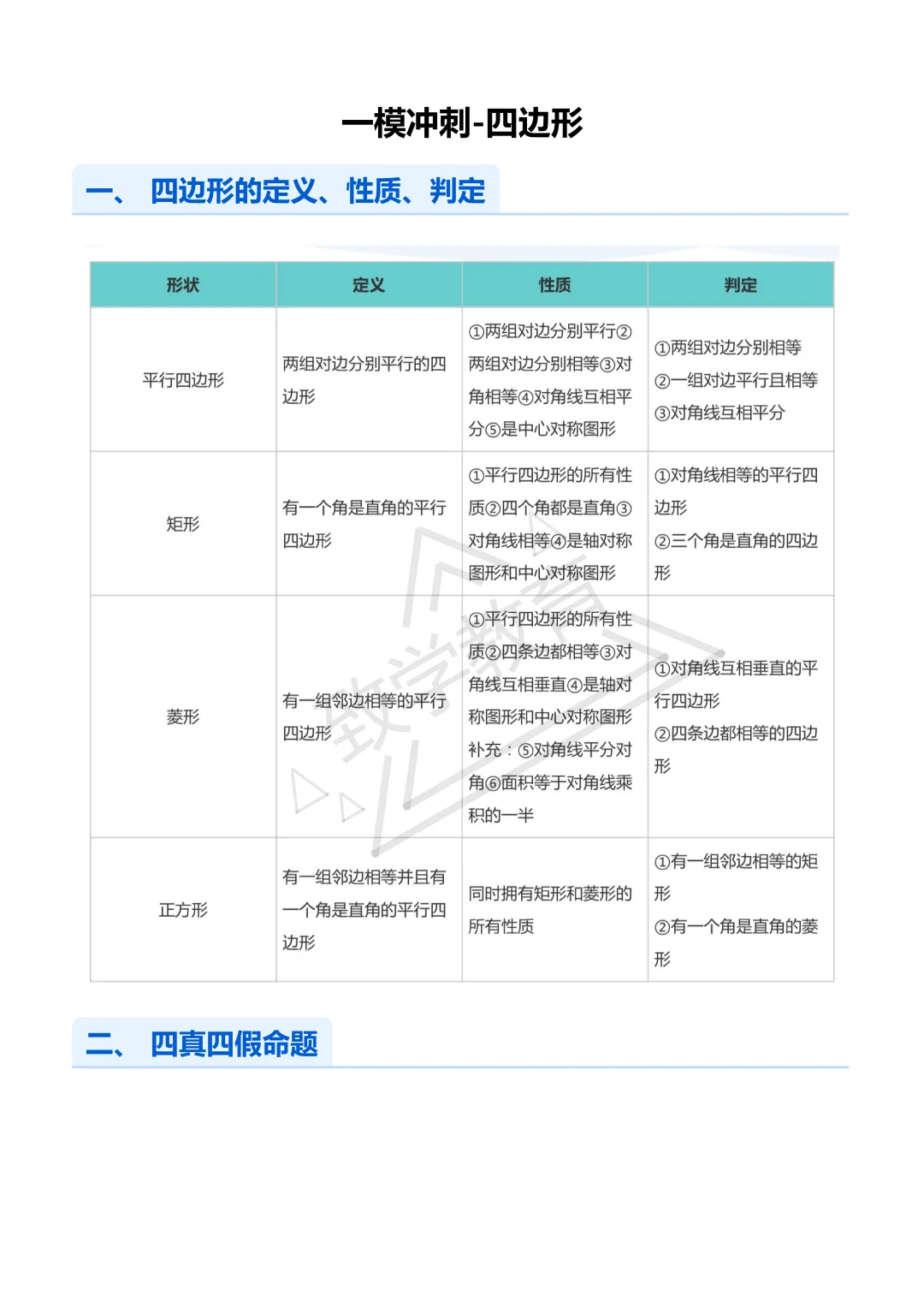 内容包含了知识点复习+往期一模卷针对性的真题好题