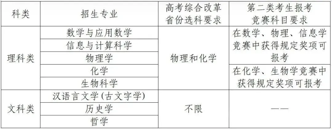 各省(区、市)符合2025年普通高等学校招生全国统一考试报名条件,具有强烈的专业兴趣,综合素质优秀,基础学科拔尖,并有志于将来从事相关领域科学技术工作的学生。申请报名考生分为以下两类: