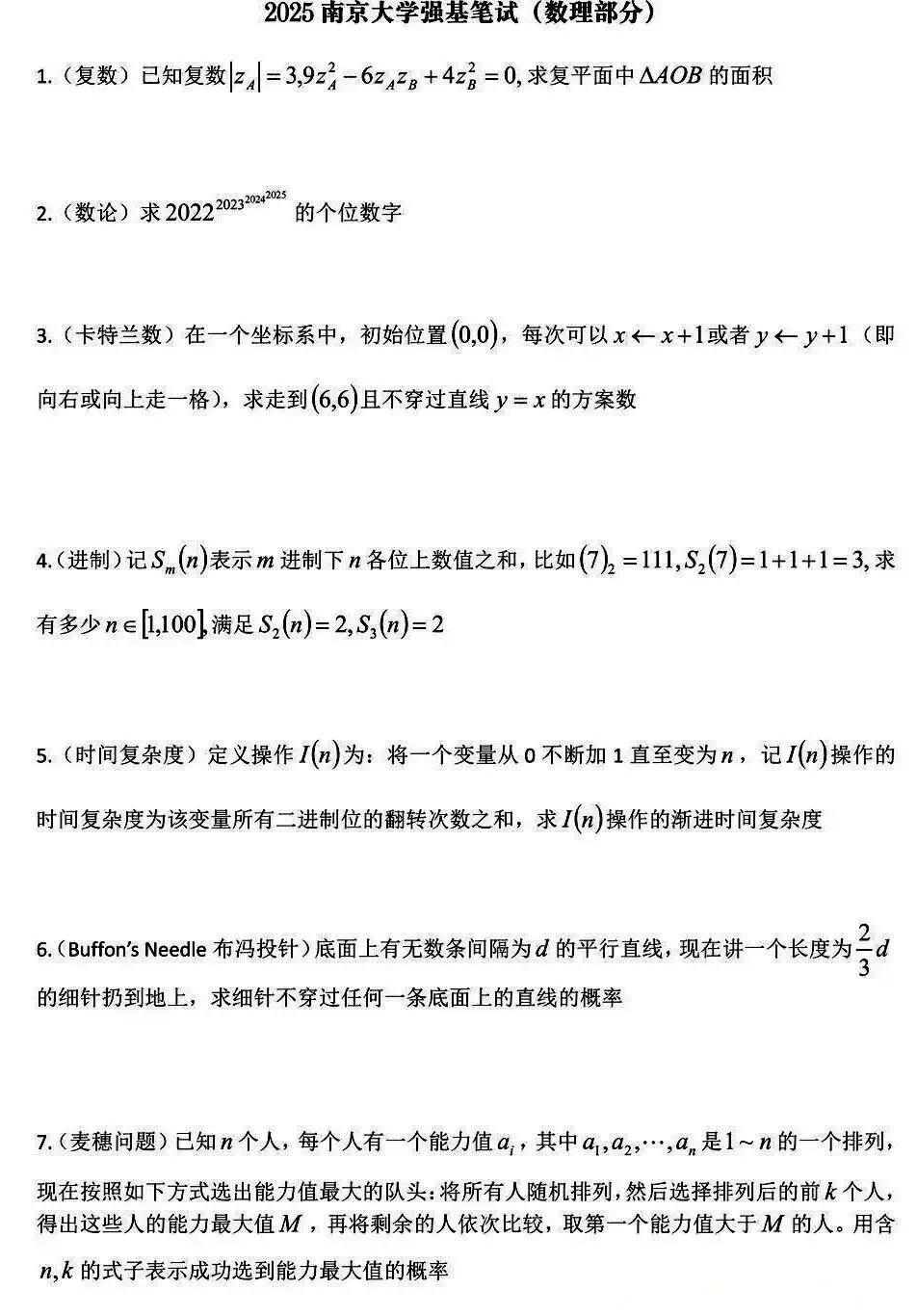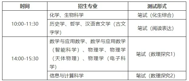 南京大学强基第一类考生初试考核内容:
