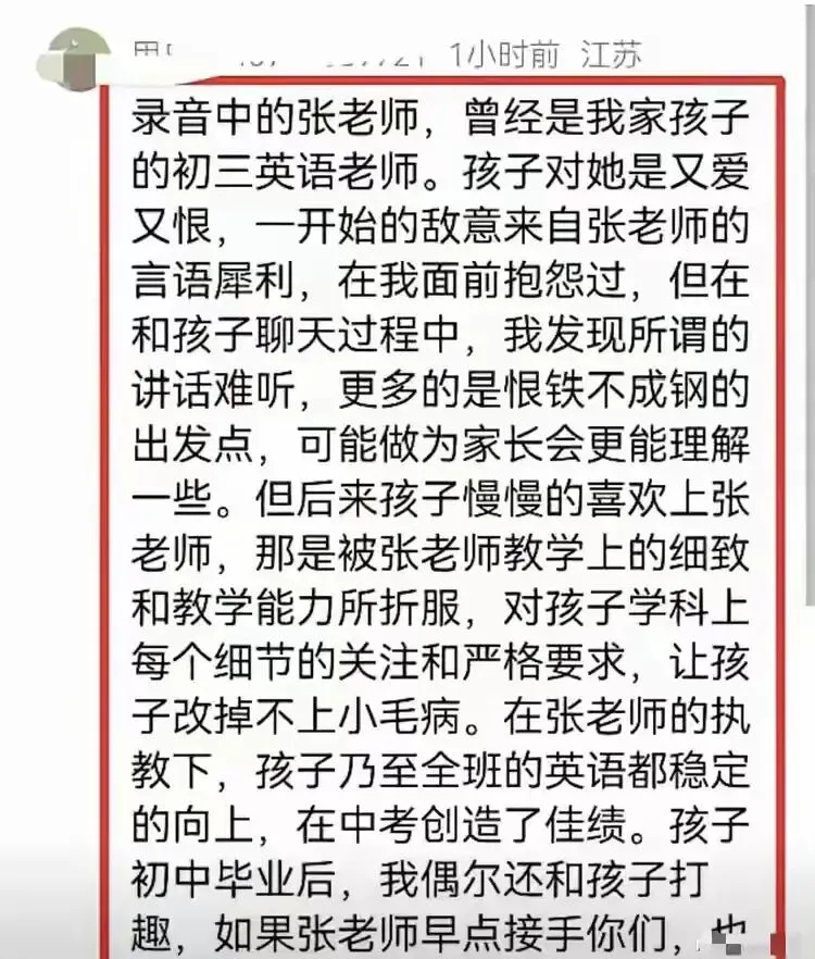不少往届学生也出面作证,这位老师虽然严厉,却是真心为学生前途着想,很多人正是在她的严格要求下成绩大幅提升。大家普遍认为,老师只是管教方式直接、说话冲了些,远谈不上师德问题,更不该被一段剪辑音频一棍子打死。
