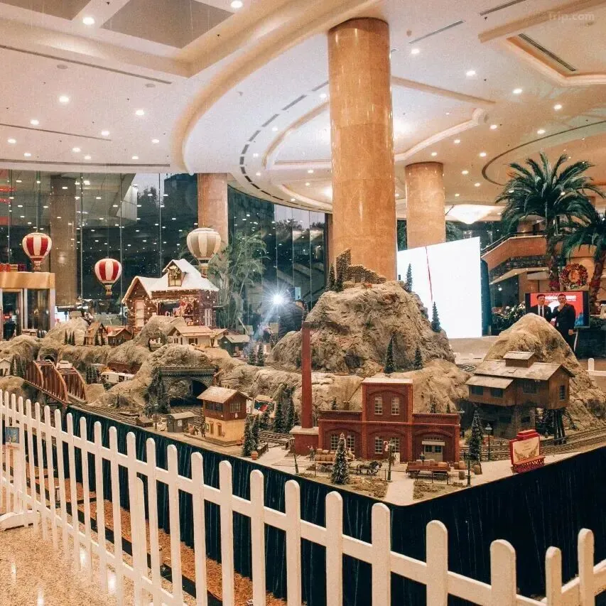酒店大堂以微缩火车模型装置为核心亮点,轨道设计精巧,复古与现代感兼具的火车模型穿梭其中,形成奇幻的微观世界。这一设计不仅吸引儿童驻足,也通过动态装置为空间注入活力,体现对家庭客群的重视。同时,大堂整体采用柔和温馨的吊灯设计,搭配整洁宽敞的布局,营造出优雅且舒适的公共区域氛围。
