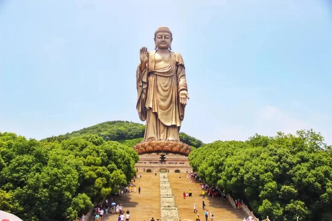 酒店享用早餐后,参观【慈光普照·祥云绕麓·灵山大佛胜境】(已包含景交车,游览约2小时),这里禅意与山水共鸣,境界值拉满,堪称“净土”!佛光普照、云绕灵山、梵音回响、禅步净心齐具,更有九龙灌浴、梵宫幻境、曼飞龙塔、五印坛城依次呈现,解锁东方佛国的庄严与震撼,这才是心灵该有的朝圣~作为“世界佛教论坛永久会址”,灵山胜境以八十八米青铜大佛为核,融合唐风建筑与现代科技。漫步其间,可见莲花步道延伸至天际,祥云常伴钟鼓之声,每处景致皆暗合佛法妙义,令人心凝形释。① 【九龙灌浴·花开见佛仪】:九龙灌浴广场每日定时开启圣境。青铜莲花随梵乐徐徐绽开,太子佛金身自花心显现,九道泉水自龙口喷涌沐佛。当甘露自空中洒落,接一杯饮下,传说可得智慧清凉、吉祥加持。② 【灵山梵宫·穹顶生莲境】:步入梵宫犹如走进佛教艺术殿堂。抬头可见巨型穹顶彩绘“天象图”,千盏莲花灯渐次明灭;廊柱间镶嵌琉璃、浮雕、漆画,展现华藏世界之瑰丽。行至塔厅,仰观星空穹顶流光变幻,仿若见证佛国刹那永恒。③【五印坛城·藏韵沐心庭】:临湖而立的藏式宝塔,红白金三色映照碧水。转经廊外铜筒轻响,唐卡壁画暗香浮动。登临顶层凭栏远眺,可见大佛静立山岚、太湖烟波浩渺,风铃声声入耳,恰似佛语涤心。
