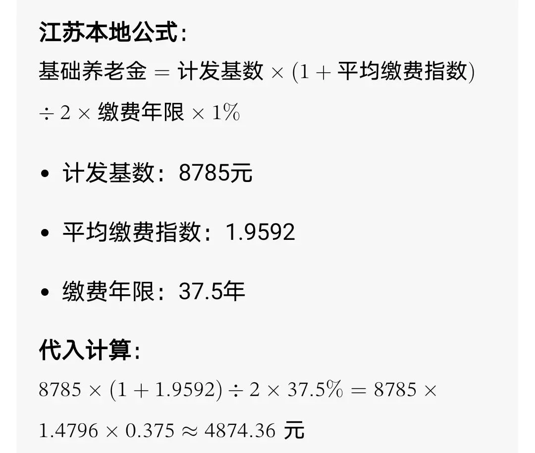 3. 南京计发基数8785元,在江苏属于第一梯队,叠加高指数长工龄,最终拿到近9000多,远超当地平均水平,可以有一个很好的退休生活。