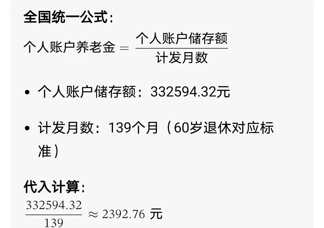 2. 个人账户养老金:2392.76元