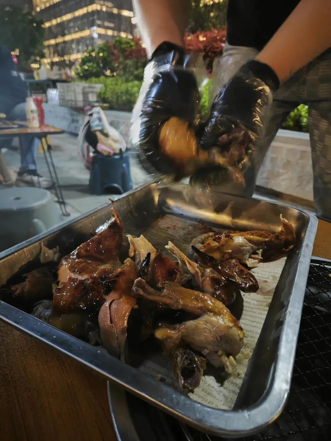 有的人可能会觉着这样的野摊很便宜,但是脏。首先,这烤鸡也不便宜,但也不算贵,其次,有一段脱口秀很好地解答了这个疑问:吃的人多你怕什么?即使他不卫生长期吃得了病吃的人多反正也能进医保(哈哈哈😃哈哈哈哈)
