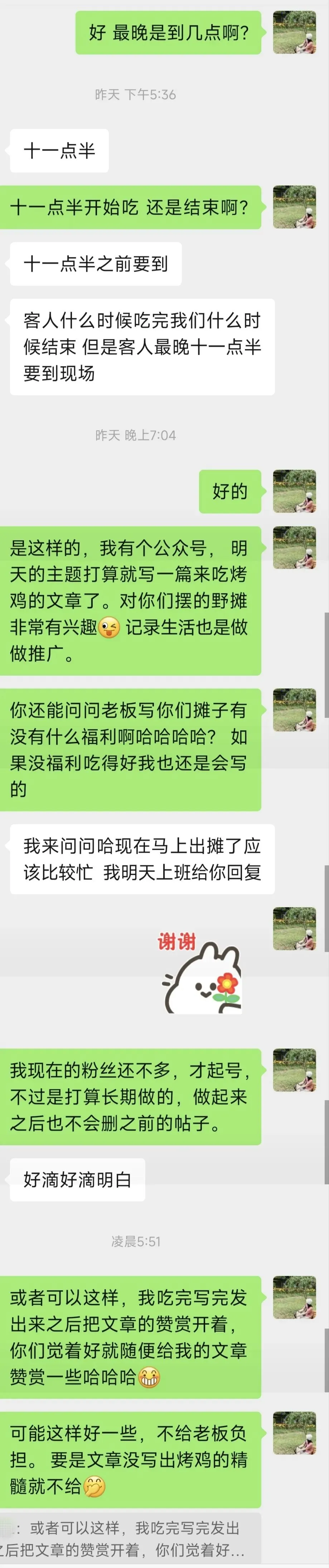 关于我和野摊老板之间有没有暗中交易、这篇文章有没有打广之嫌: