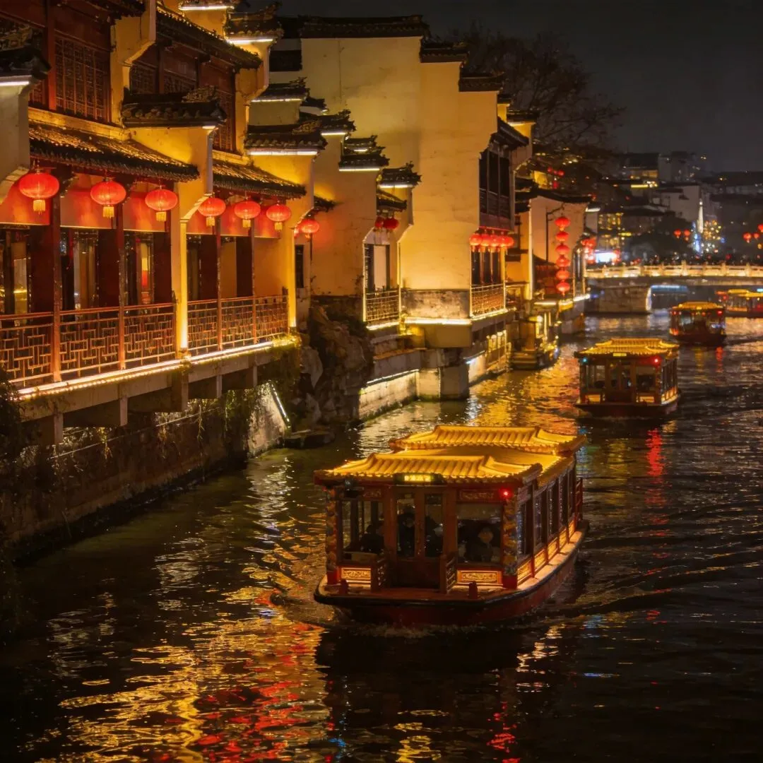 夜游精华:秦淮河画舫夜游,桨声灯影如诗如画