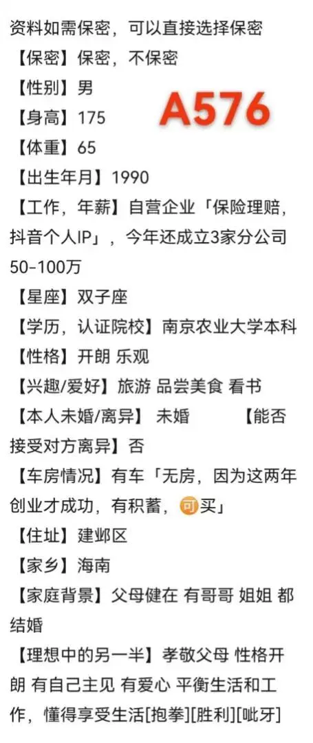 这是一个浮躁的时代,也是一个认识人成本极低的时代,无效的人和事占据太多的时间,骗子、约炮、理财销售等等让我们产生焦虑、内耗,为了帮助大家节约时间,相亲宝公众号发帖人不公布联系方式,我们红娘负责过滤一些不靠谱的人,专门进行验证,核实。提示大家:相亲急切的心情可以理解,但相亲过程中不要有任何金钱往来,切记切记。精准一对一推荐介绍,唯一线下门店地址:秦淮区大行宫长安国际2307。
