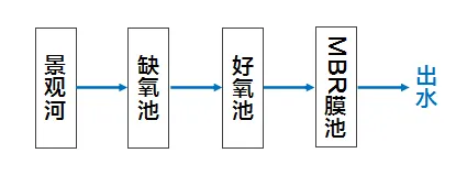 本方案污水经过自吸排污泵后,提升进入缺氧池、好氧膜池,完成污染物的去除和脱氮除磷,污水中的细菌和悬浮物被截留在膜的外部,达标的水经过膜池抽吸泵排出,将污染的河水处理后循环送至河道上游,保证处理出水主要水质指标(COD、NH3-N、DO、TP)达到地表水环境V类标准。