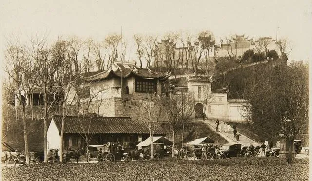 图中是鸡鸣寺,屋顶带着飞檐,正中影壁舒展着弯曲纹路,山环着,树枝稀疏,庙下停满了黄包车和人力车,多少人上山拜佛,庙门外反倒更热闹些,每天路边还会有卖香火的小摊,老妈说她小时候去庙还要拉着她的小辫子不让乱跑,从庙后往山坡一溜烟爬上去,脚底下全是松软落叶,烧香许愿是严肃事,庙外人情才最松弛。