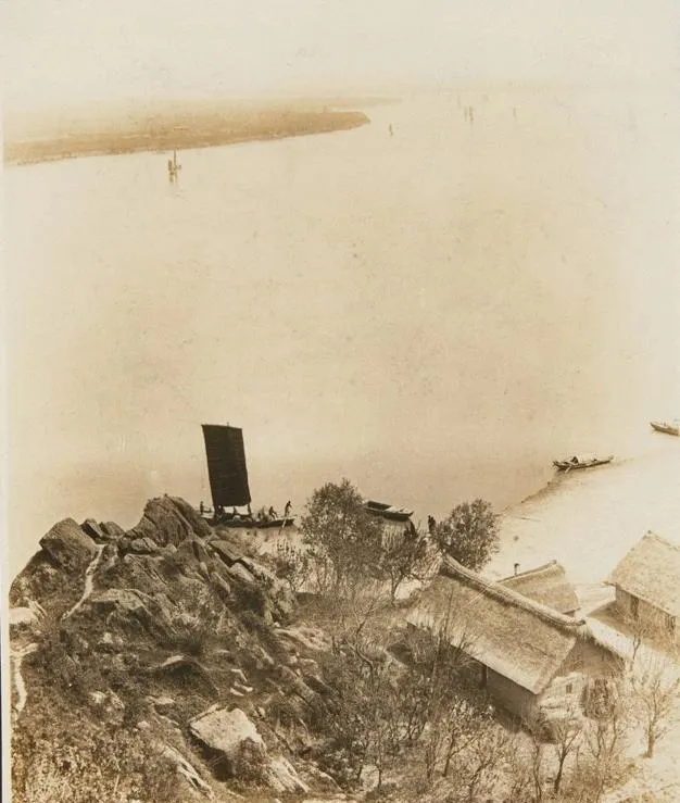 这个水面铺开,岸上屋顶卷起弧线,老南京人都认得,图里小木船、帆影点缀着宽水面,两头货船一字排开,河边对岸山色隐约,景象明明不新鲜,却让人觉得分外安静,水上的声音是橹声、是吱呀,小时候大人爱说,春天河边能闻见一阵泥土腥气,谁家小孩丢颗石头进去都能溅一身水花,河景就是南京的老味道,没什么人花心思细看,但缺了就不是这城。