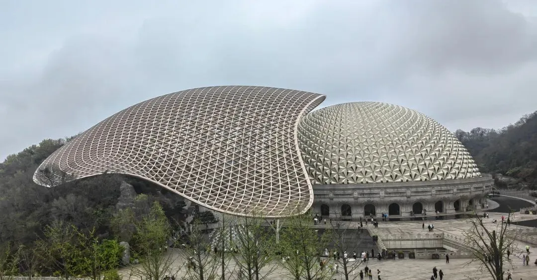 地面部分建筑的外观是遍布凸起的一个半圆球,就不少人将其形容为