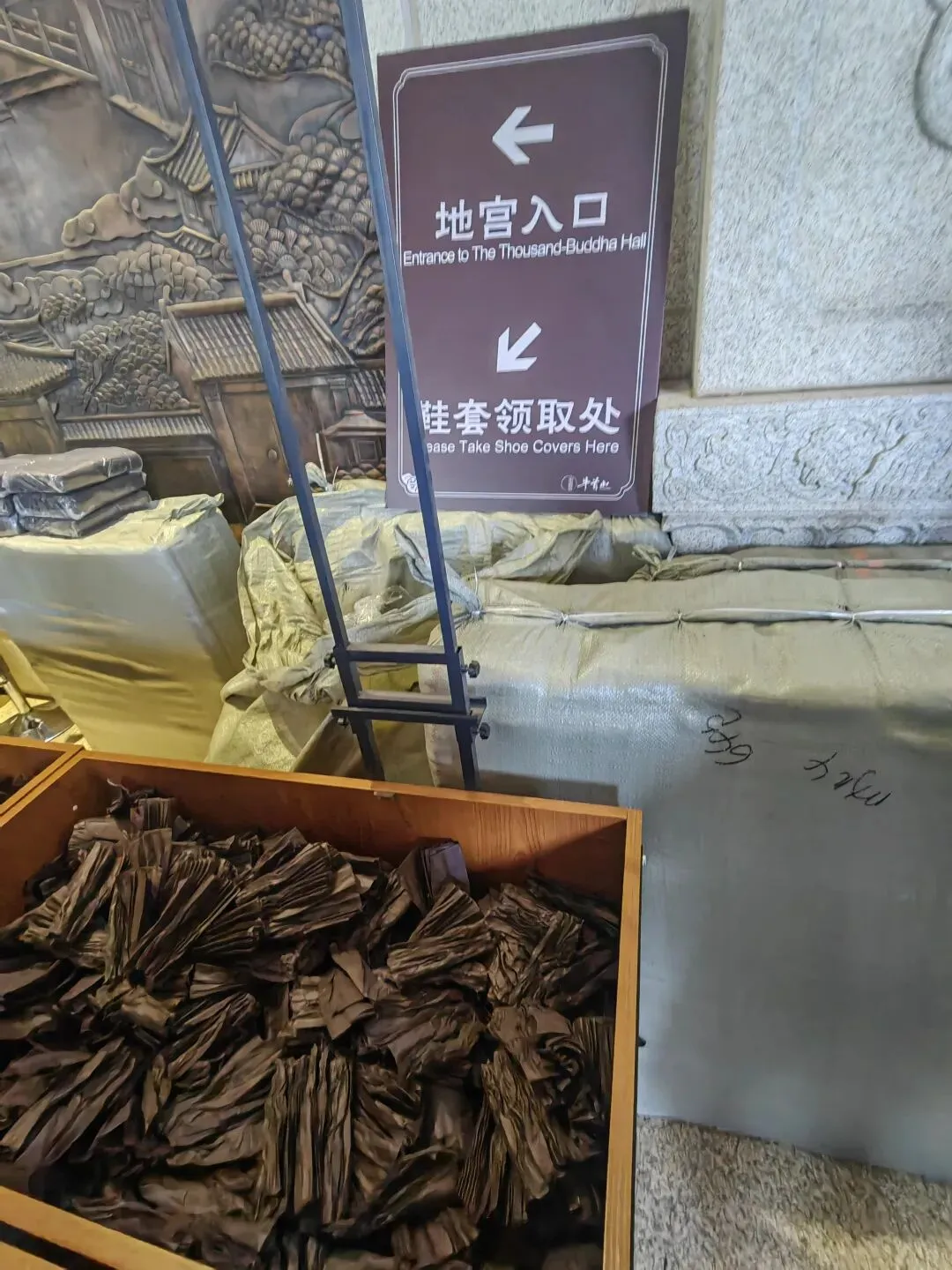 ,地宫在一层外面走廊有进口,需先领取鞋套再进入,乘扶梯直达地宫五层,抵达极为繁复而华丽的