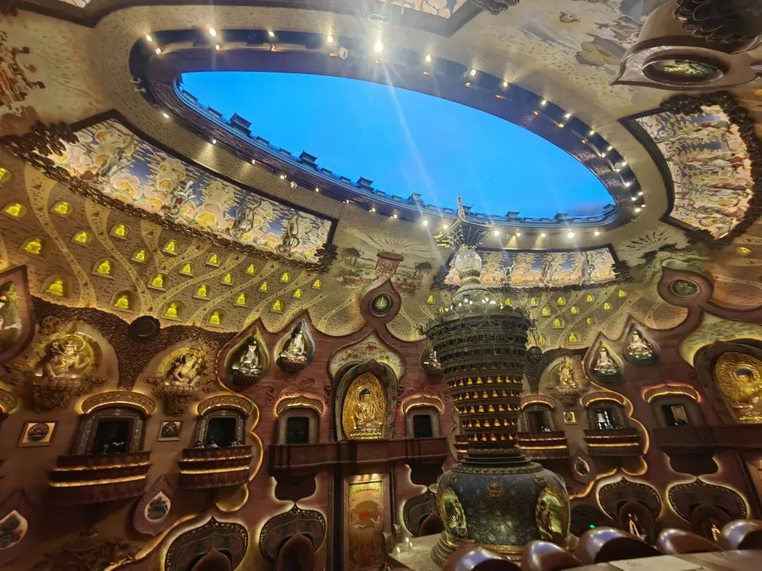 四周有56个飞天菩提门,360度环绕整个佛顶宫,像是莲花托珍宝。