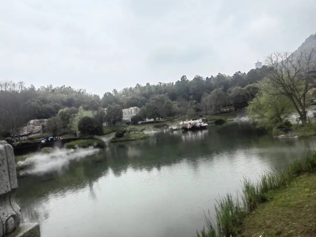 ,在佛顶宫前的水潭边,可拍摄建筑在水中的倒影是网红拍照点。