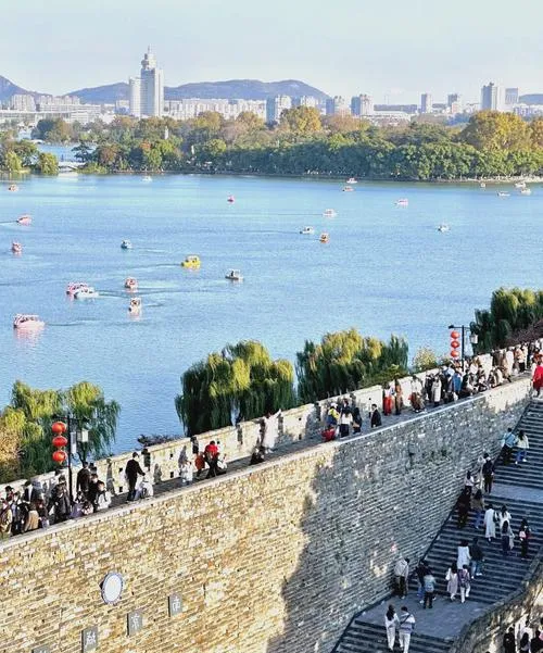 你站在玄武门城墙上往下看就能明白这个意思,明城墙、玄武湖、紫金山、鸡鸣寺,这些东西不是散落在南京各处,而是紧紧贴在一起,形成一个完整的空间结构,湖在城中,城在山下,山在城外,这种布局在中国城市里是很少见的,它让南京这座城市有了一种天然的层次感,不是靠建筑堆出来的,是地理和历史长出来的。
