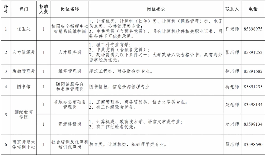 因工作需要,南京师范大学采用劳务派遣方式面向社会公开招聘7名非事业编制工作人员,现将有关事项公告如下: