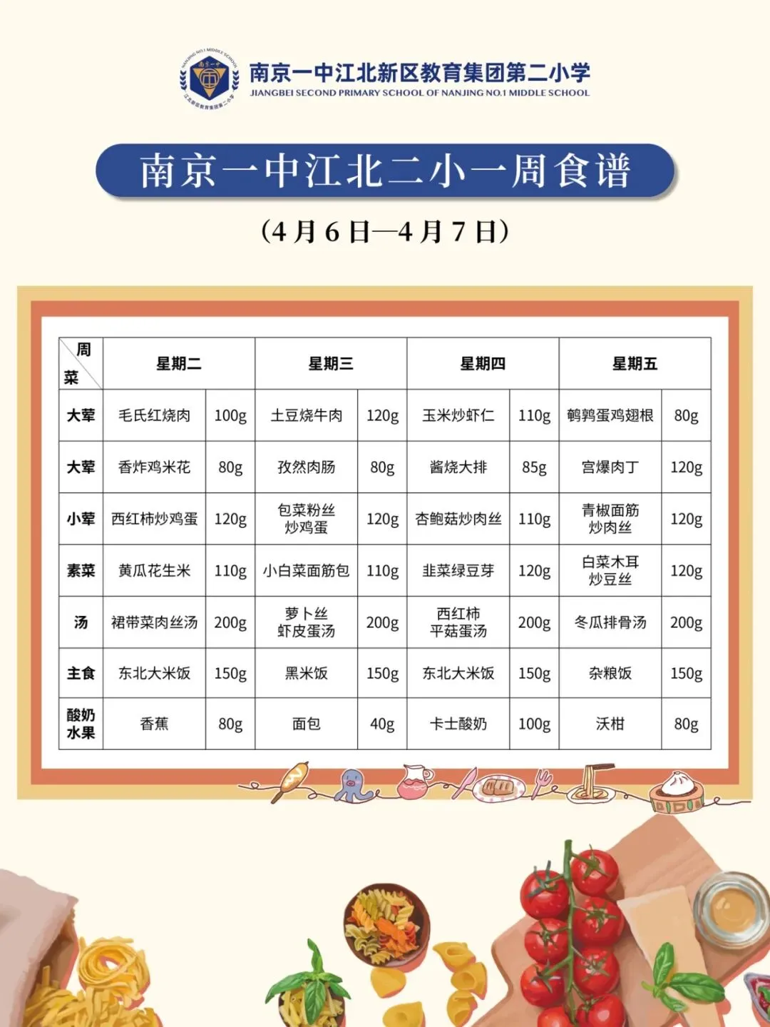 >【每周食谱】南京一中江北二小一周食谱(第六周)