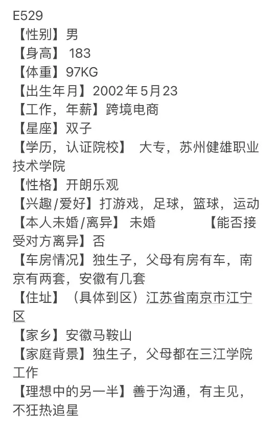 南京月老丨2002年,男,身高183,专科学历,跨境电商工作