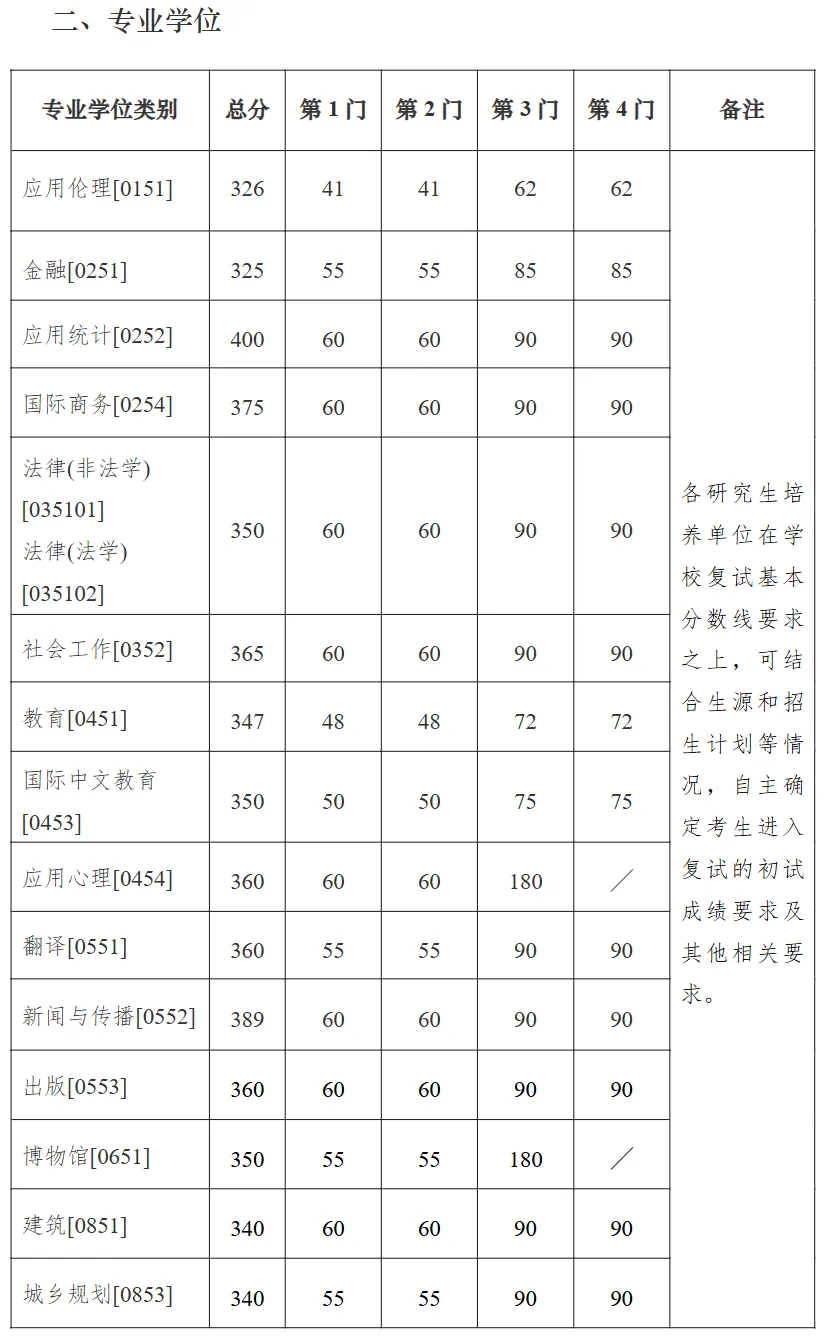 北京大学2026年硕士研究生复试基本分数线