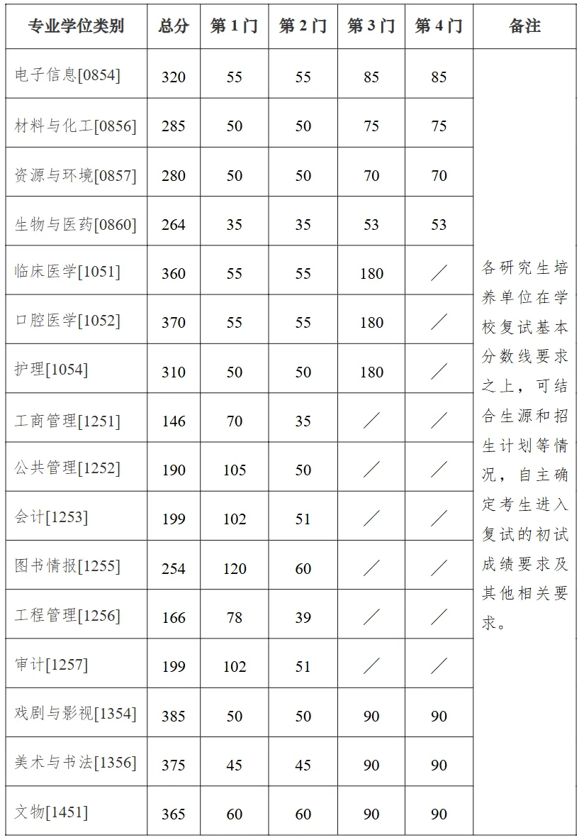 武汉大学2026年硕士研究生复试基本分数线