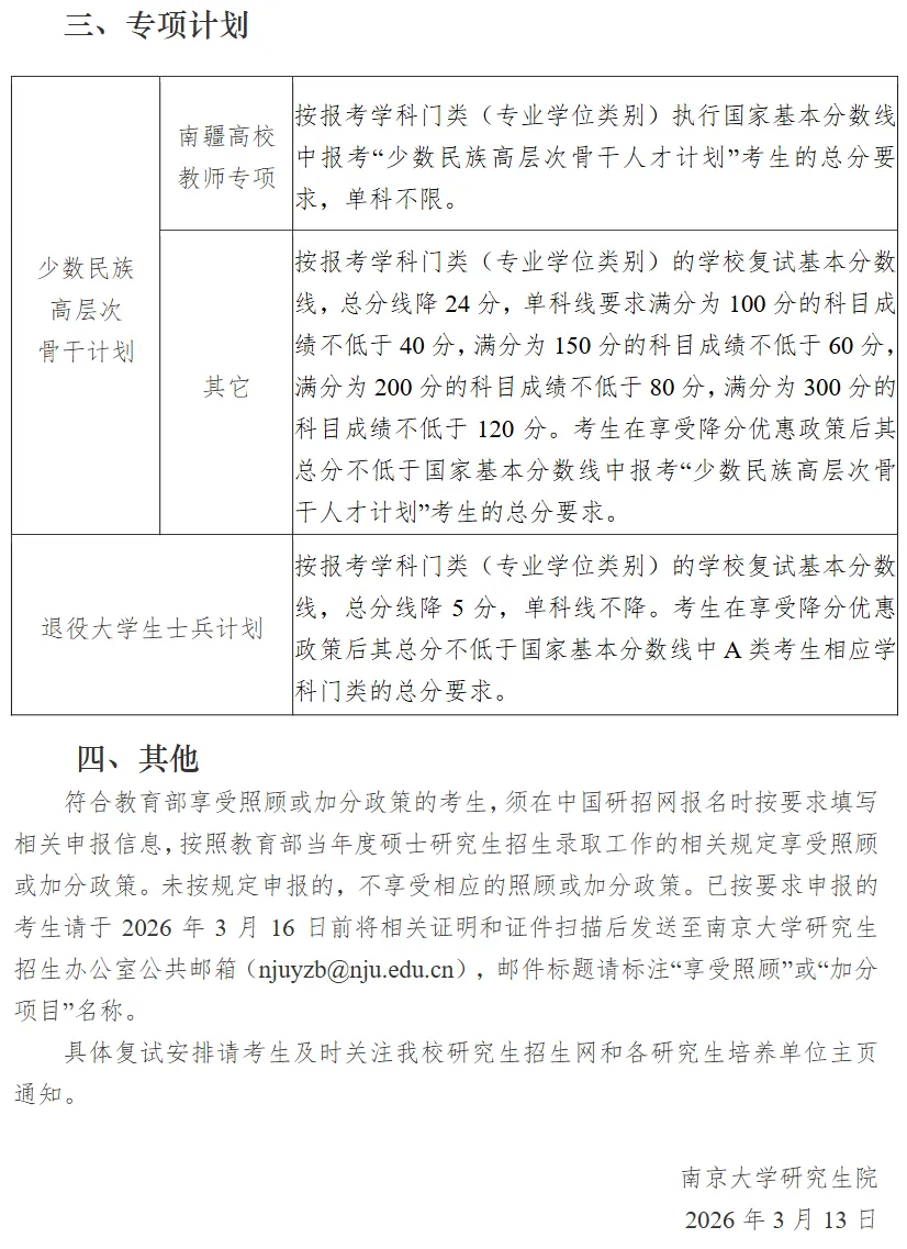东南大学2026年硕士研究生复试基本分数线