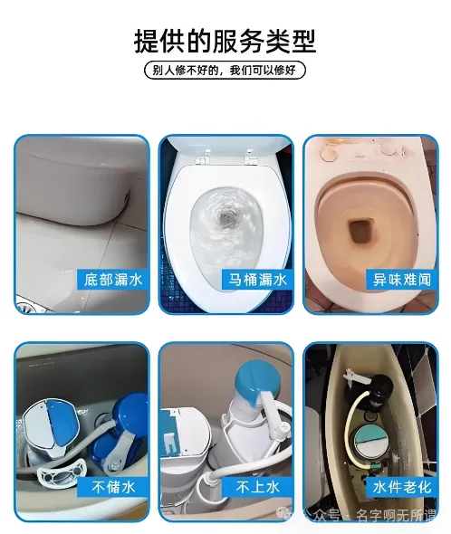 马桶维修:维修马桶冲水按钮、水箱洁具,处理漏水、冲水缓慢等问题。