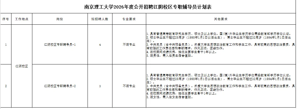 2.报名方式:网上报名,登录南京理工大学人才招聘网(网址:http://rczp.njust.edu.cn,推荐使用GoogleChrome浏览器或将360浏览器改成极速模式)注册后,按照系统提示填写申报信息,选择应聘岗位。报名截止(2026年4月15日24:00)后,所有报名信息将不能更改,请【点击下方“立即投递/投递简历”,即刻进行职位报名】。