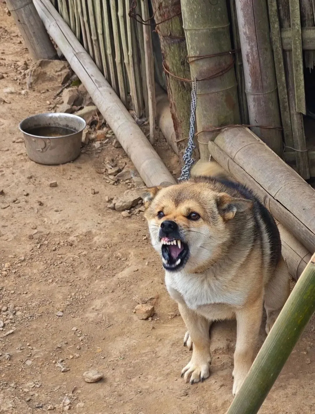 路过茶园,看家的旺财霸气多了,冲着我们呲出它的大白牙。
