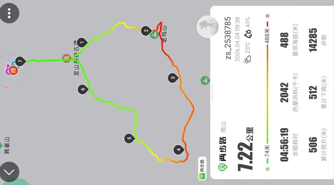 说笑间,我也愈发觉得,山里的相遇本就是一场温柔的偶然。素不相识的人,因同赴一场山野短暂相逢,彼此眼里满是善意,滑倒时伸手搭一把,疲惫时轻声说句加油,没有陌生的疏离,只有随性的温暖。走出这片山林,我们大概率会消散在人海,再也不会遇见,既然如此,一时的狼狈又有何妨。山野从不在意姿态是否完美,那些跌跌撞撞的瞬间,那些随性自在的欢笑,才是徒步最珍贵的意义,重要的从不是一路顺遂,而是全身心投入的体验,是刻在心底的感受,是独属于此刻的鲜活经历。