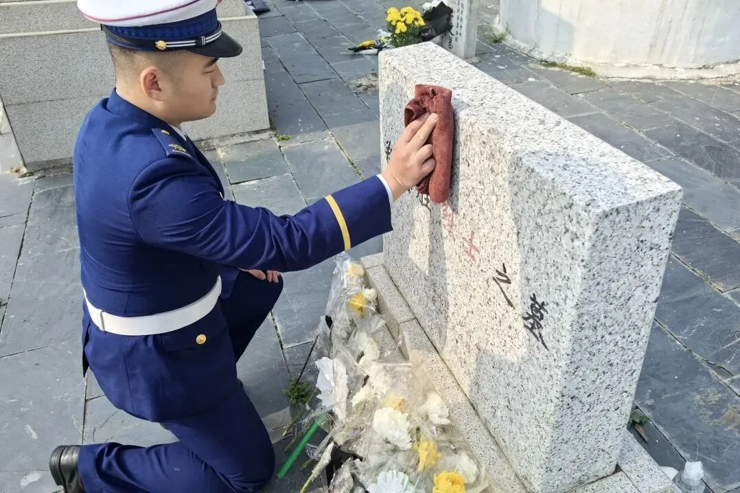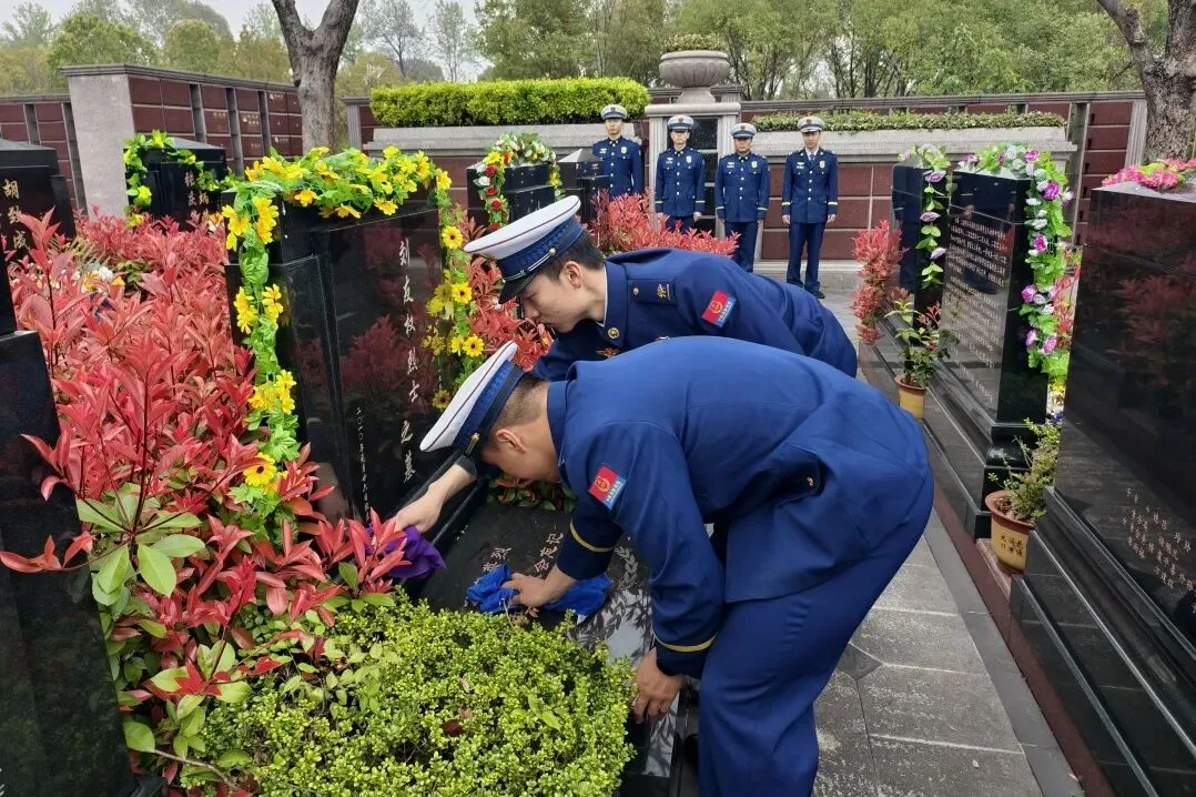 队伍各级前往南京抗日航空烈士纪念馆、雨花台烈士陵园等地,开展清明祭扫。在肃穆的仪式中,全体人员整齐列队、垂首默哀,向长眠于此的英雄敬献鲜花。这一刻,消防员的“火焰蓝”与陵园的“苍松绿”交相辉映,诠释着跨越时空的忠诚接力。