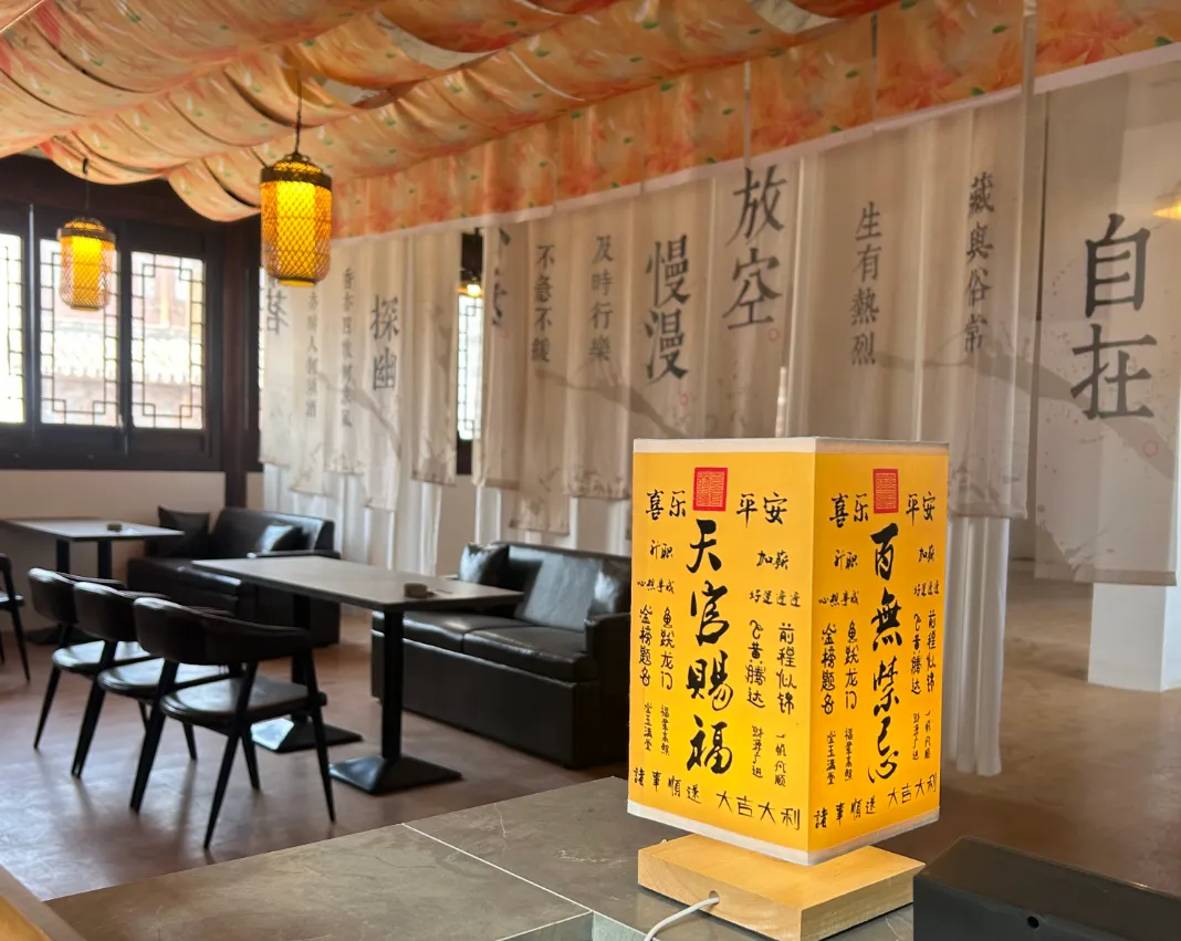 "主理人出身三代玄学世家",但解卦看运这件事,他交给了更专业的渠道——"提前预约的国学老师"。每周五到周日的白天,会有老师驻店。一杯茶的时间,聊聊近况,听听建议,像是一场轻松的对话,不带压力,也不神神叨叨。"不是算命,"常来的客人说,"更像是有个人帮你把乱糟糟的思绪,顺着《周易》的逻辑捋了一遍。"