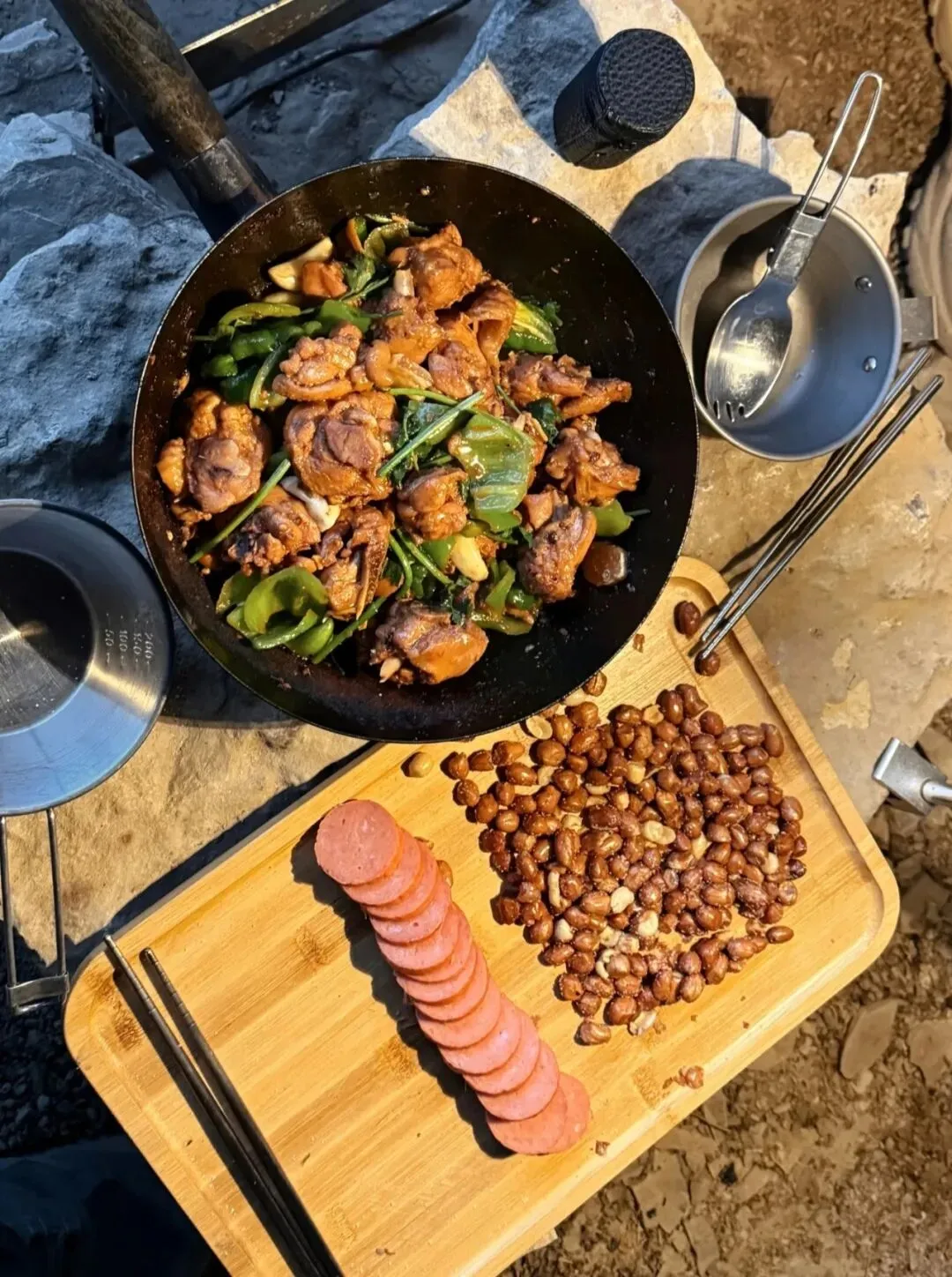 在洞穴内宽敞安全的区域,教练带领大家布置场地,孩子们迅速分工:摆放鲜嫩肉片、翠绿蔬菜、圆滚滚的丸子等食材,安装便携式火锅炉灶并仔细检查燃气安全,还有人主动清洗碗筷,忙得不亦乐乎。当火锅咕噜咕噜煮开,热气在洞穴中弥漫,诱人的香气包裹着每一个人。孩子们围坐一团,你一筷我一筷分享美食,畅谈探险中的小发现、小惊喜——攀爬时的紧张、发现美景的兴奋、互助时的温暖,都在欢声笑语与火锅咕嘟声中交织,让团队情谊在热气腾腾中愈发深厚。
