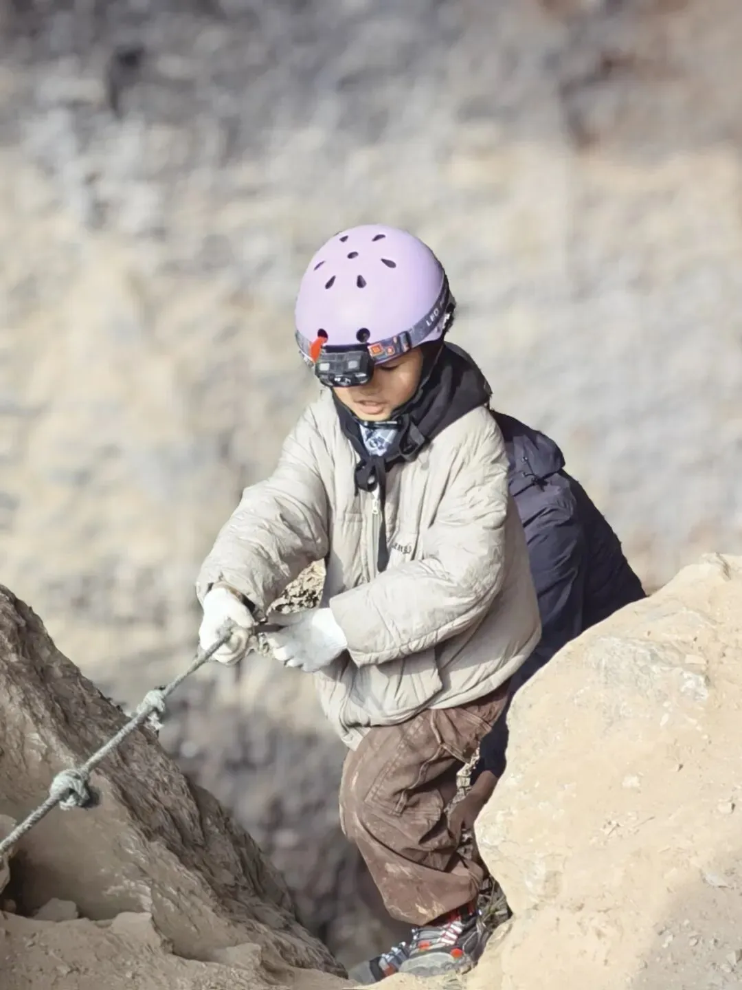 ✅ 必备装备:专业头盔、头灯、高腰防滑鞋、护膝护肘、耐磨旧衣物