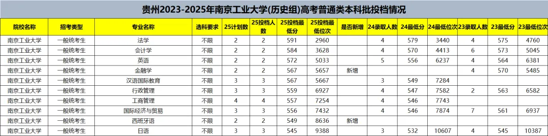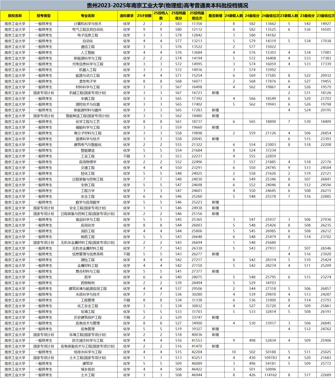 距离高考仅剩63天,铭师升学每日将会更新3-5所高校录取数据及志愿填报相关知识,陪学子们备战高考,助学子们金榜题名!以下为贵州省2023年-2025年南京工业大学高考普通本科投档数据汇总: