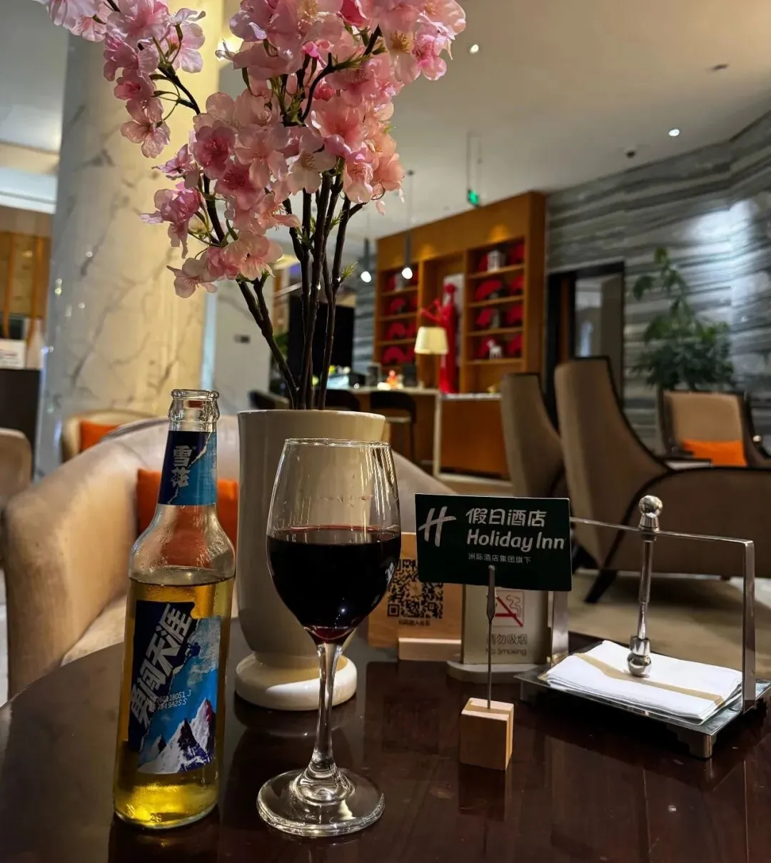 我们就在大堂吧小酌一杯,缓解一日疲劳。